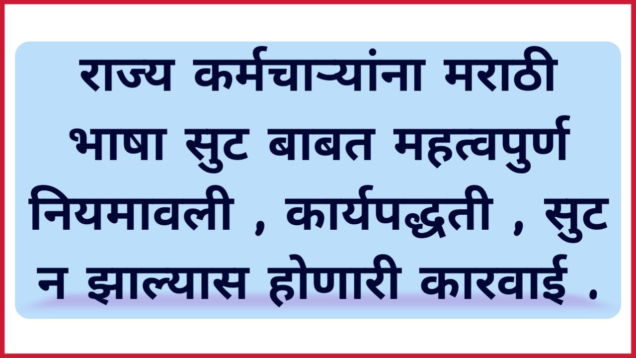 राज्य कर्मचाऱ्यांना मराठी भाषा सुट बाबत महत्वपुर्ण नियमावली , कार्यपद्धती , सुट न झाल्यास होणारी कारवाई .