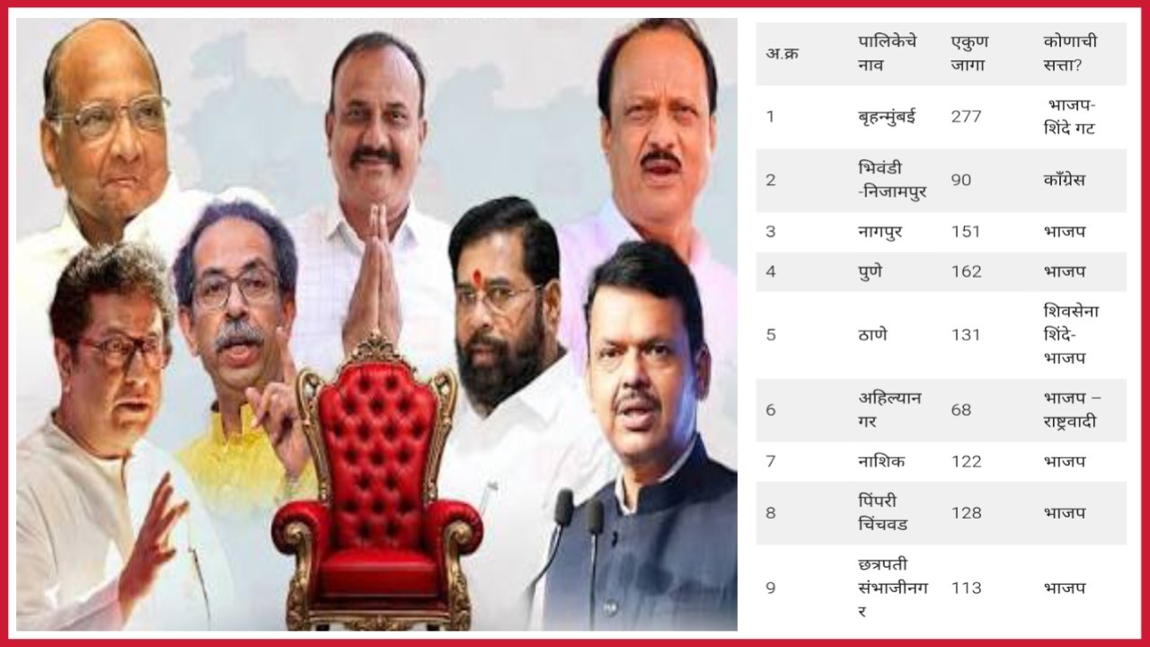 राज्यातील 29 महानगर पालिकाचा संपुर्ण निकाल ; कुठे कोणाची सत्ता , किती जागा संपुर्ण माहिती .
