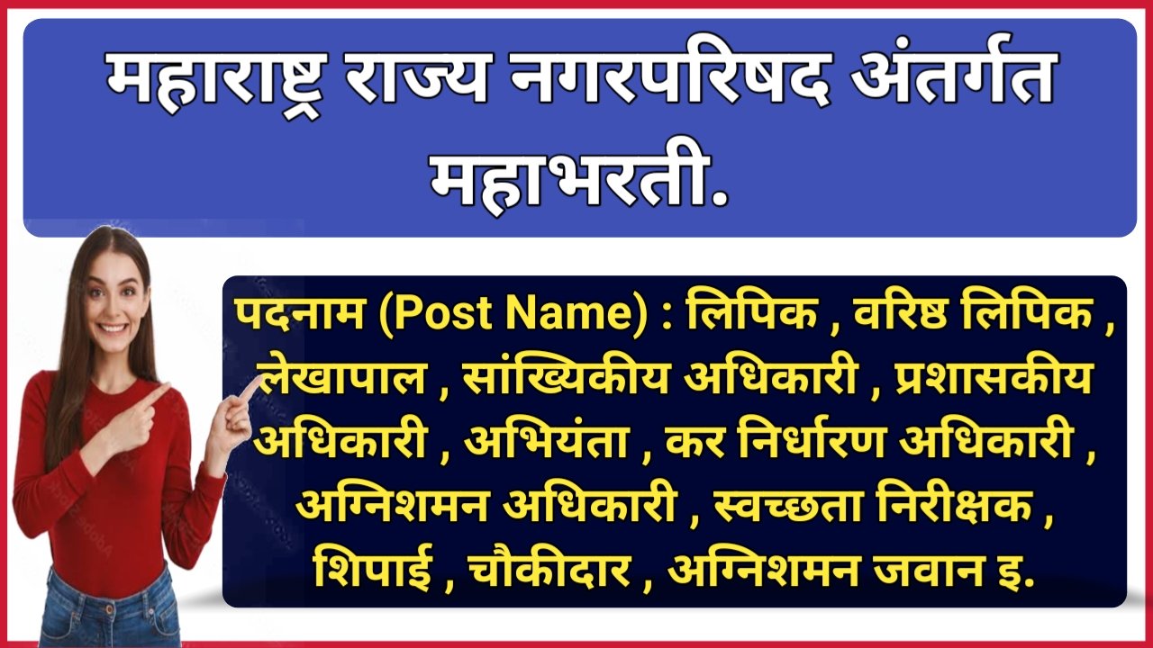 महाराष्ट्र राज्य नगरपरिषद अंतर्गत गट क व ड संवर्गातील तब्बल 3720 रिक्त जागेसाठी महाभरती.