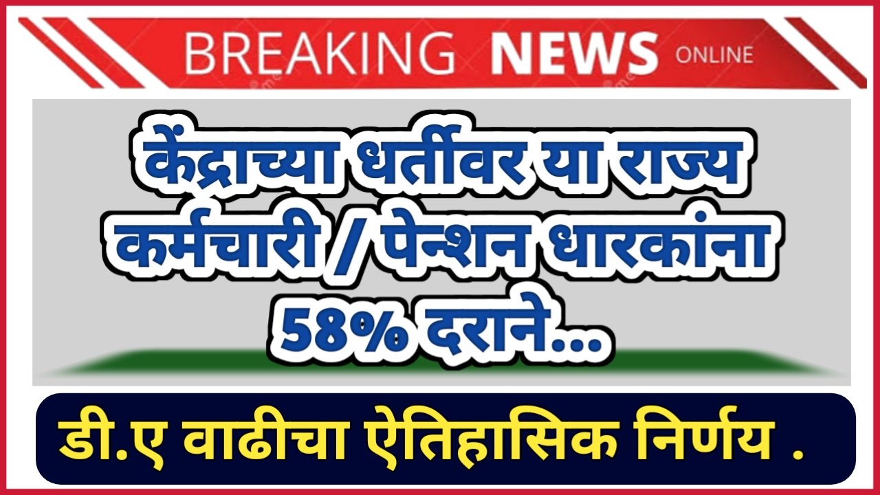 DA : केंद्राच्या धर्तीवर या राज्य कर्मचारी / पेन्शन धारकांना 58% दराने डी.ए वाढीचा ऐतिहासिक निर्णय .
